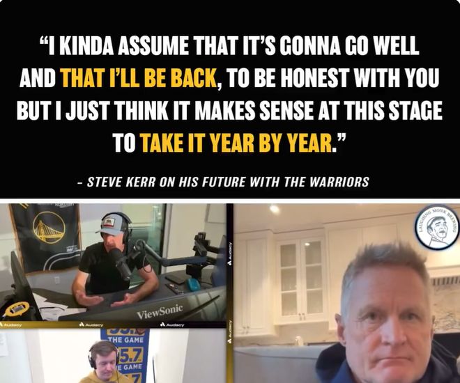 我想我只是到了这样一个阶段,经历了这一段漫长的执教旅程。我和乔以及迈克(邓利维,勇士总经理) 之间有一种合作关系,他们理解我的想法:我只想看看赛季结束时的一切情况。我认为这对他们也有好处,你知道的。